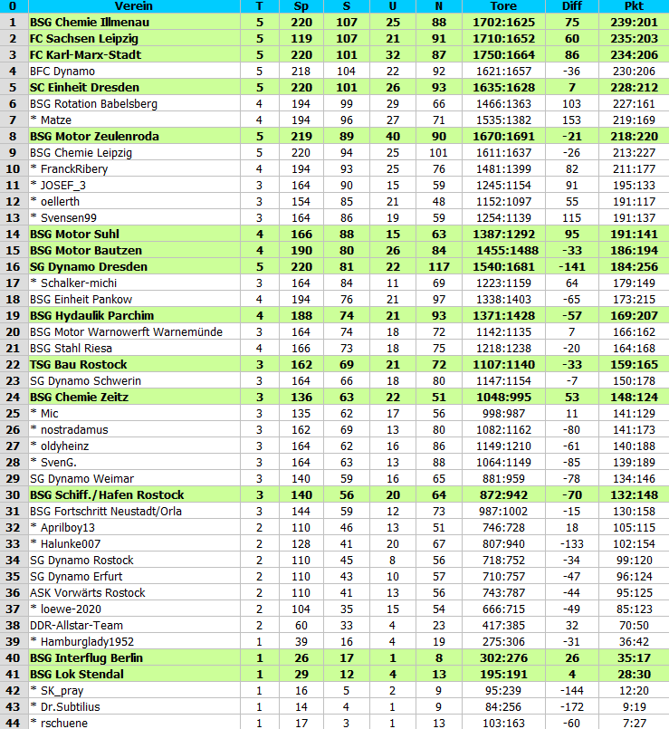 Ewige Tabellen Liga